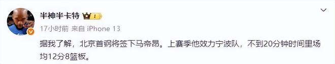 北京男篮是新赛季的争冠热门之一,球队已经举办了新赛季的出征仪式,无论是主教练许利民还是队长翟晓川,都明确表示新赛季的唯一目标就是争冠。在球队的阵容方面,北京男篮正在寻找第四外援,很多北京球迷对此非常关注。就在日前,这件事有了确定的消息,据媒体人“半神半卡特”透露,北京男篮即将和外援芒格-马帝昂完成签约。